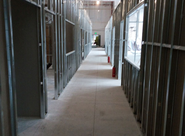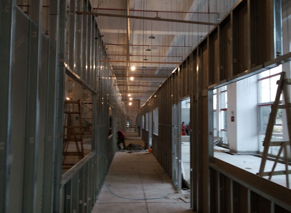 工程進度:隔墻搭建、門窗安裝