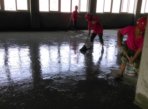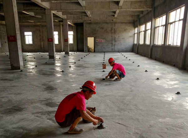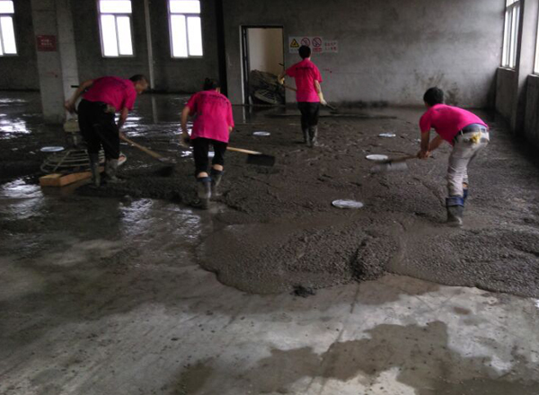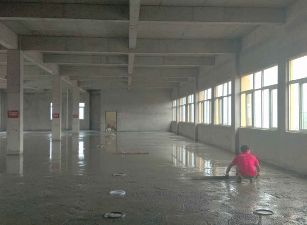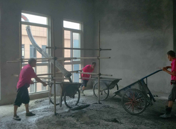 下圖為重慶華發裝修施工人員在進行二層地面現澆10CM混凝土加抗裂筋。