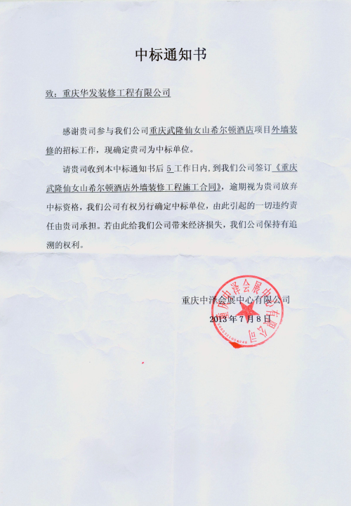 2013年7月8日,我司經(jīng)過數(shù)輪投標、談判,在眾多裝修公司中脫穎而出,成功中標重慶武隆仙女山希爾頓酒店外墻裝修工程。