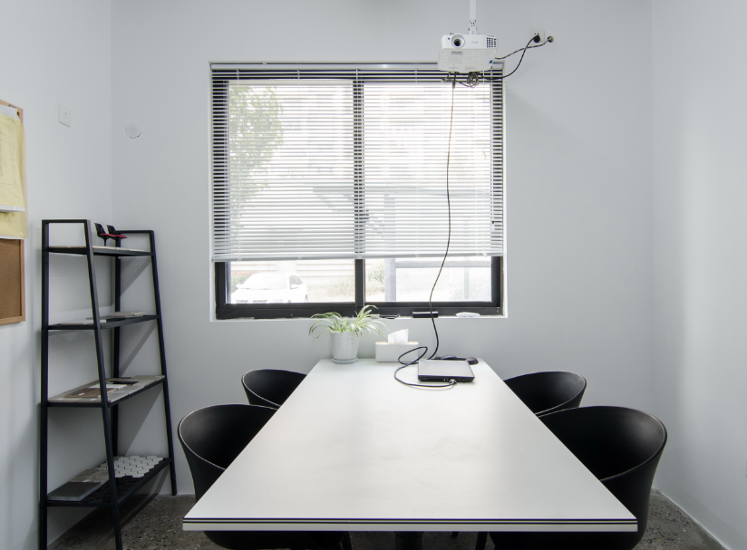 1、小會議室明亮,黑白的搭配,簡單又大方。