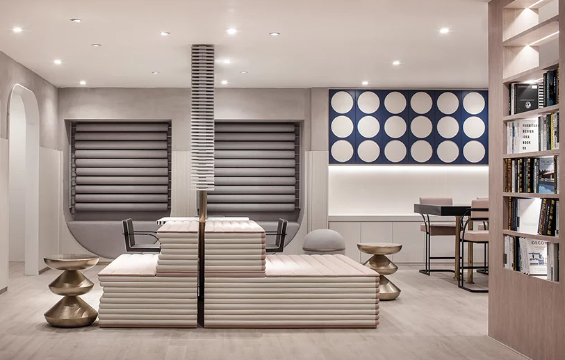 四樓是成熟和精英群體的大型工作空間。自動扶梯附近的空間也作為公共接待區,周圍有大型辦公區,每個公司的員工都可以非常方便地到達工作區。通過在大面積上使用木飾面和灰褐色混凝土涂層,這個樓層的整體空間被賦予了穩重和成熟的氛圍。運動器材的元素也可以在空間中找到,提醒人們在工作后注意身體健康,營造健康的工作與生活平衡。
