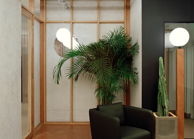 裝修以膠合板和混凝土為主要材料,完成了以幾何照明裝置和綠色植物為特色的室內設計。聚碳酸酯隔板作為設計的主要組成部分,允許一個適合現代工作場所的透明環境。下面一起跟著