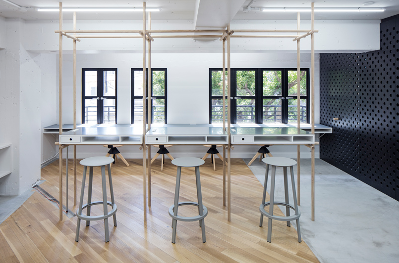這是個(gè)和蘋果合作的一家配件公司,位于東京,這個(gè)地方是從一家以前的法國(guó)餐館改建而來(lái)的。一個(gè)黑色的穿孔隔斷將寬敞的開放式辦公室與包括會(huì)議室和行政辦公室區(qū)分開。正面一起跟著華發(fā)小編來(lái)看看這個(gè)辦公室裝修效果圖吧。
