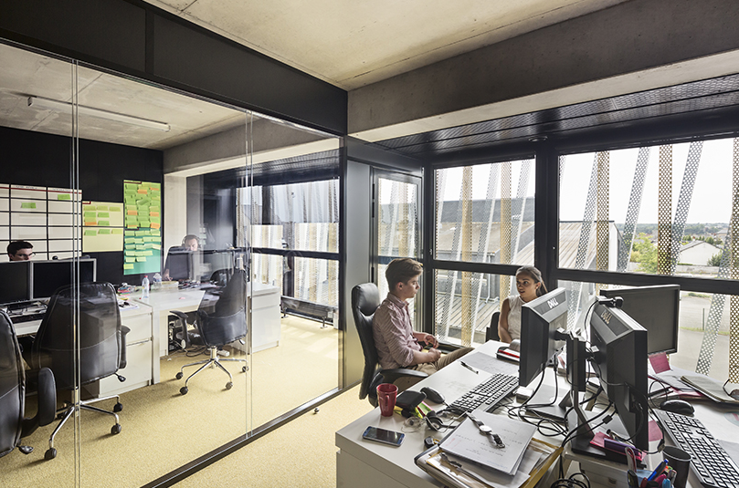 樓層由30至50平方米的辦公室裝修工作間隔開。 Périphériques Marin+trottin Archittes‘每個立面的具體設計取決于太陽的曝光量,以便最大限度地利用自然光,同時也能保護里面的人不受過多的陽光照射。辦公室裝修陰影和光之間的相互作用給外觀一個微妙的動力。隨著天空的全天變化,建筑的外觀也發生了變化。