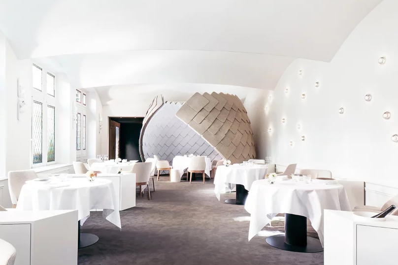 位于法國科爾馬的阿爾薩斯葡萄酒區中心,'la maisondestêtes'(或英語中的'the head of heads')是一座歷史悠久的建筑,建于1609年,其名稱源自109小頭雕塑,華麗的文藝復興風格的外觀。這座建筑今天是一家擁有兩家餐廳的五星級酒店,是科爾馬的主要景點之一,面向最近由herzog和de meuron進行翻新和擴建的無人博物館。除了現有的小酒館,一家供應傳統法國和阿爾薩斯菜肴的餐廳外,F + F studio的客戶eric girardin還想創建一家新餐廳,提供現代美食,翻新大堂,公共區域和酒店客房。